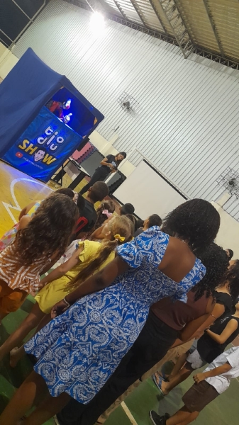 A atração cultural, conduzida pelo grupo Tiu-diu Show, encantou crianças, adolescentes, famílias e demais participantes. Entre músicas, histórias, humor e interação, a mensagem foi transmitida de forma lúdica e acessível, garantindo momentos de aprendizado, alegria e reflexão.