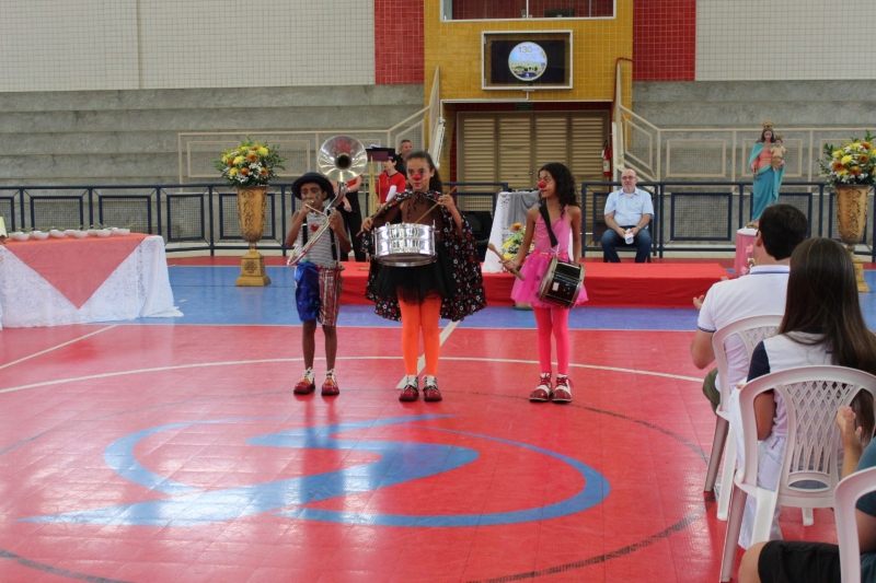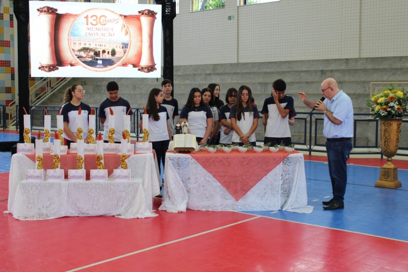 A celebração teve início no ginásio da instituição, com abertura conduzida pela Diretora Pedagógica, Marina Alves, seguida por um relato histórico apresentado pela Diretora Institucional, Ir. Maria Helena, que destacou a trajetória da escola ao longo das décadas.